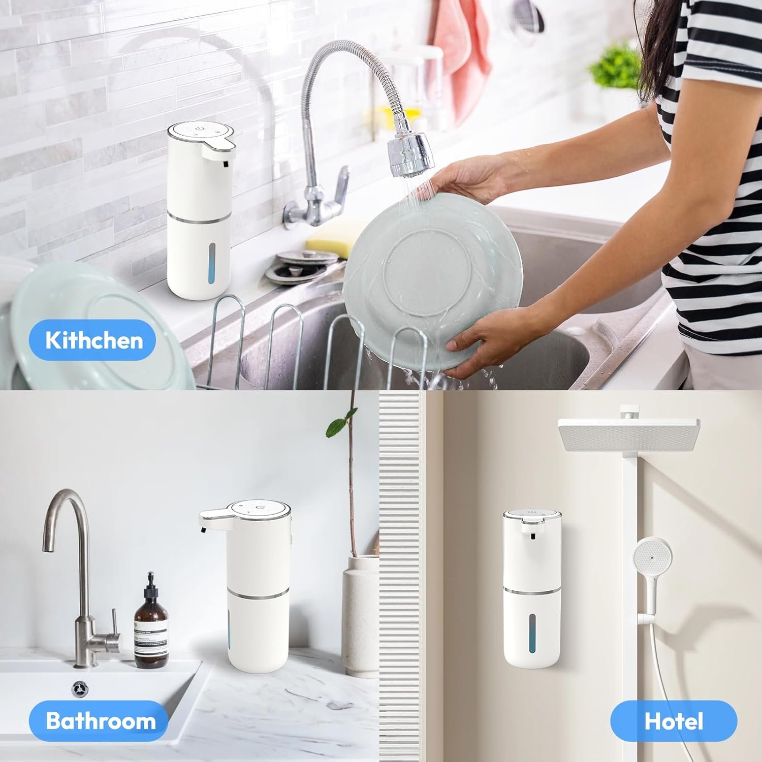 Crafted with a sleek, modern look, this dispenser fits perfectly in bathrooms, kitchens, and offices. It’s IPX5 waterproof, durable, and easy to refill, ensuring long-lasting performance. You can mount it on the wall or place it on any countertop — no drilling required. Ideal for hand soap, dish soap, or even shampoo, it combines style, hygiene, and convenience in one smart device.