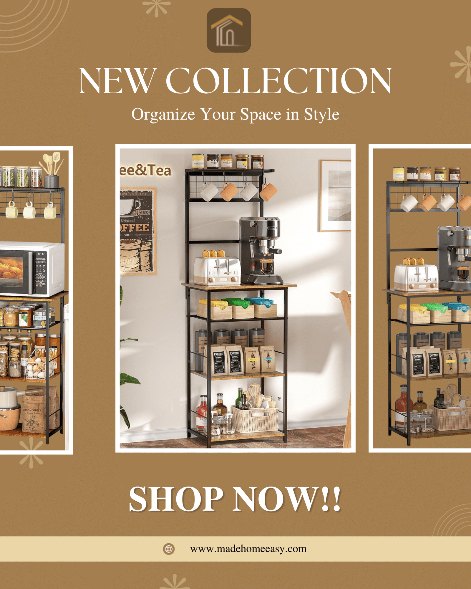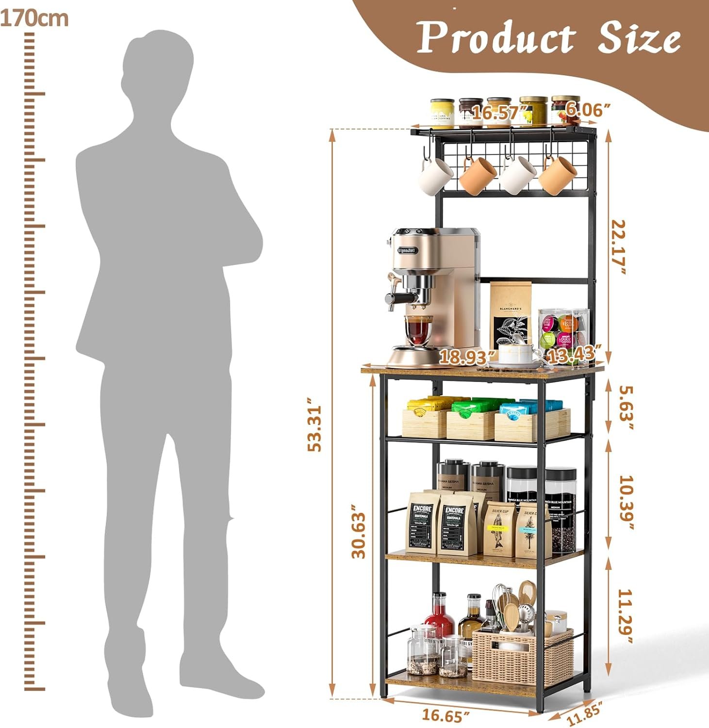 Enhance your home with the Station S-Shaped Farmhouse Cabinet Entryway, a versatile and stylish storage solution perfect for kitchens, living rooms, or entryways. This 5-tier coffee bar station features a sturdy metal frame with four S-shaped hooks, offering ample space for coffee essentials, microwave, or decorative items. Its compact design makes it ideal for small spaces, providing both functionality and rustic charm to your decor.