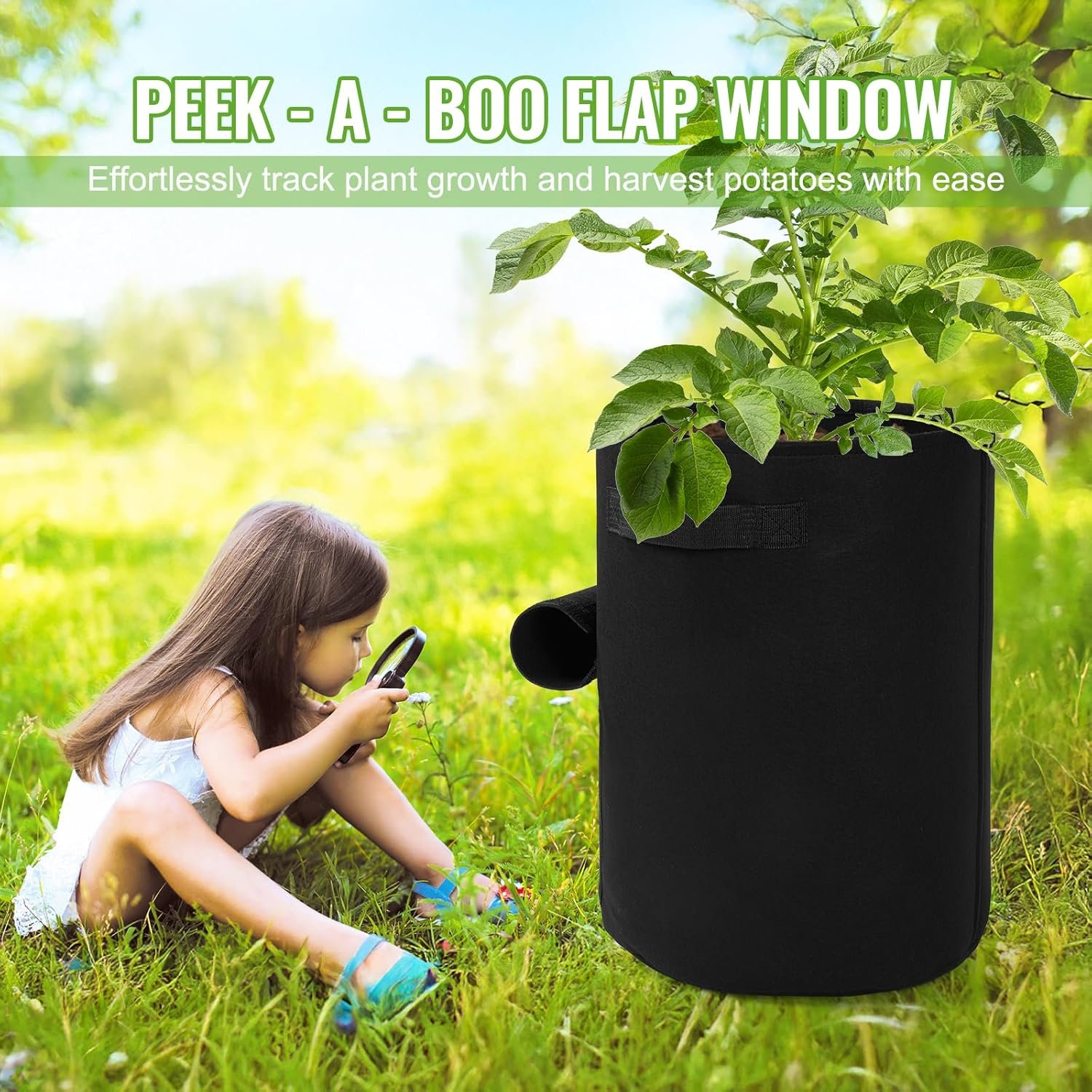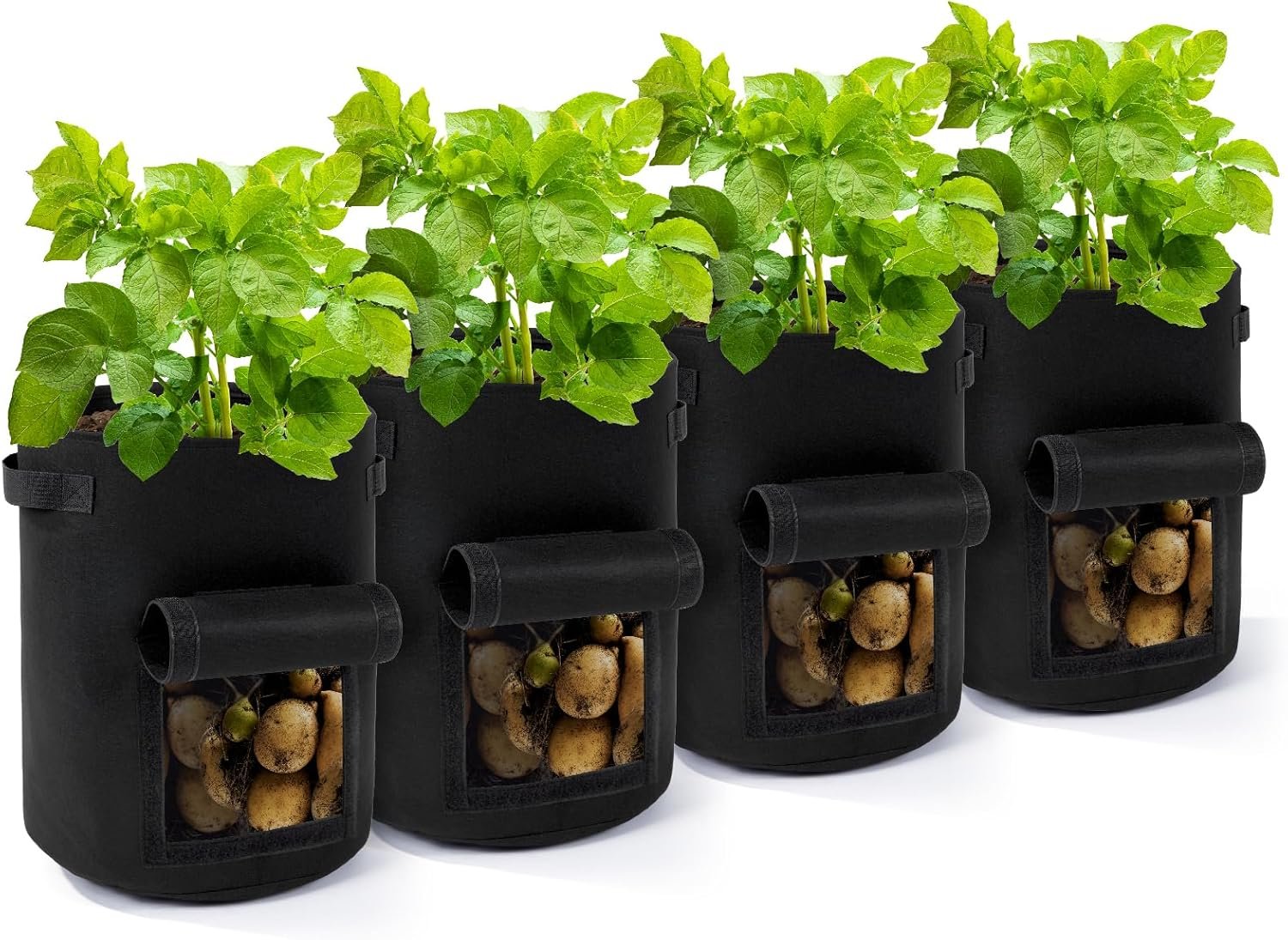 Backyard Expressions 10‑Gallon Potato Grow Bags – Set of 4 Heavy‑Duty Fabric Planters with Handle & Harvest Window