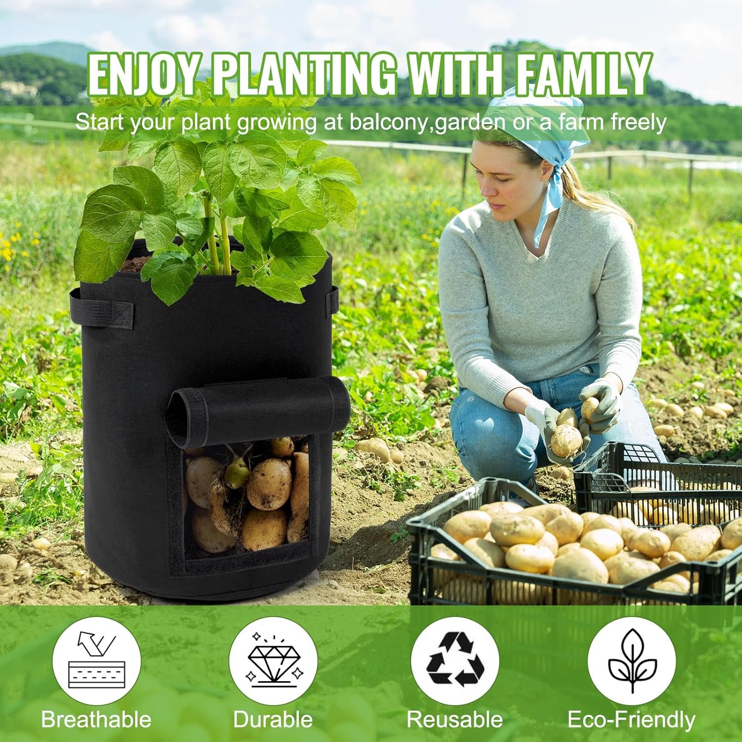 Elevate your patio or balcony garden with the Backyard Expressions 10‑Gallon Potato Grow Bags – Set of 4. Crafted from heavy‑duty, breathable non‑woven fabric, these bags promote healthy root development and feature a convenient harvest flap for easy access. With reinforced handles for effortless mobility and a reusable design that’s ideal for vegetables, herbs, and root crops—click now to bring smarter planting into your home.