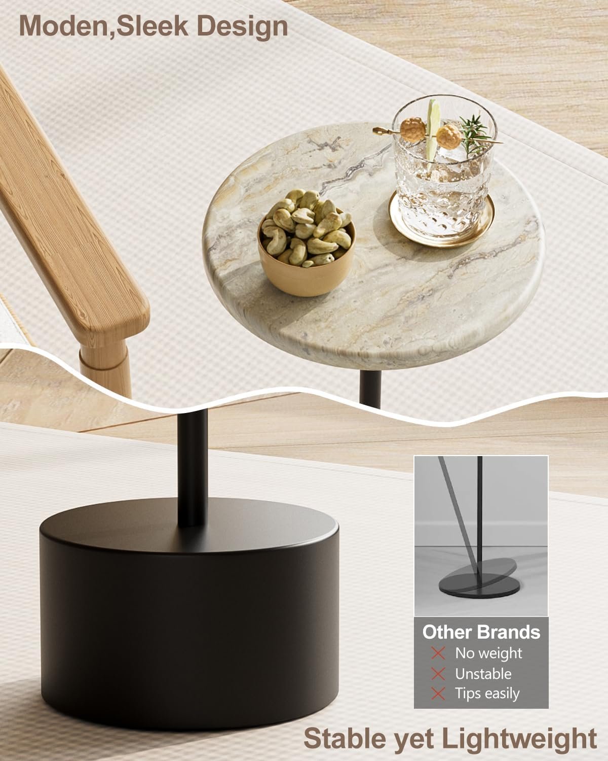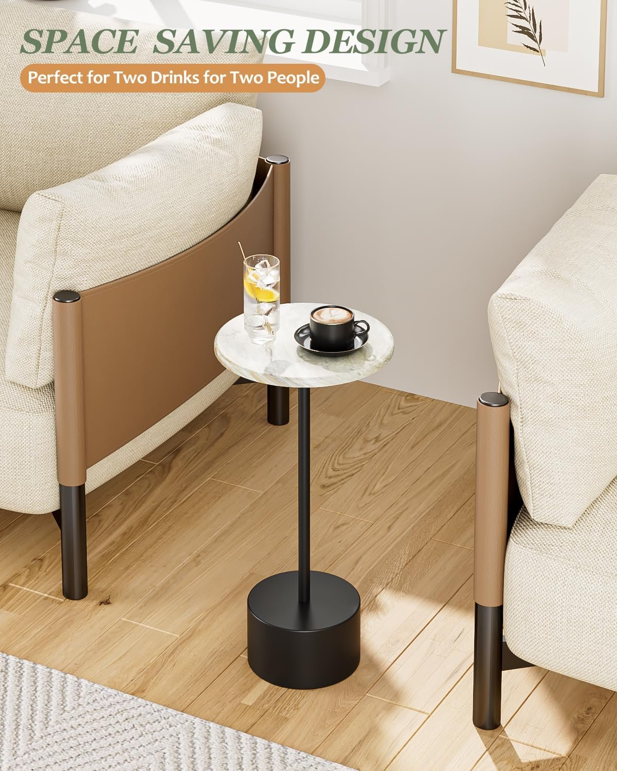 Add a touch of modern sophistication to your home with this elegant round pedestal side table. Designed for small spaces, it combines a marble-grain top with a sturdy metal base, offering both style and stability. Perfect as a drink table, nightstand, or accent piece, it fits seamlessly into living rooms, bedrooms, or offices. Easy to assemble and clean, this compact table enhances any corner with a sleek, minimalist charm.