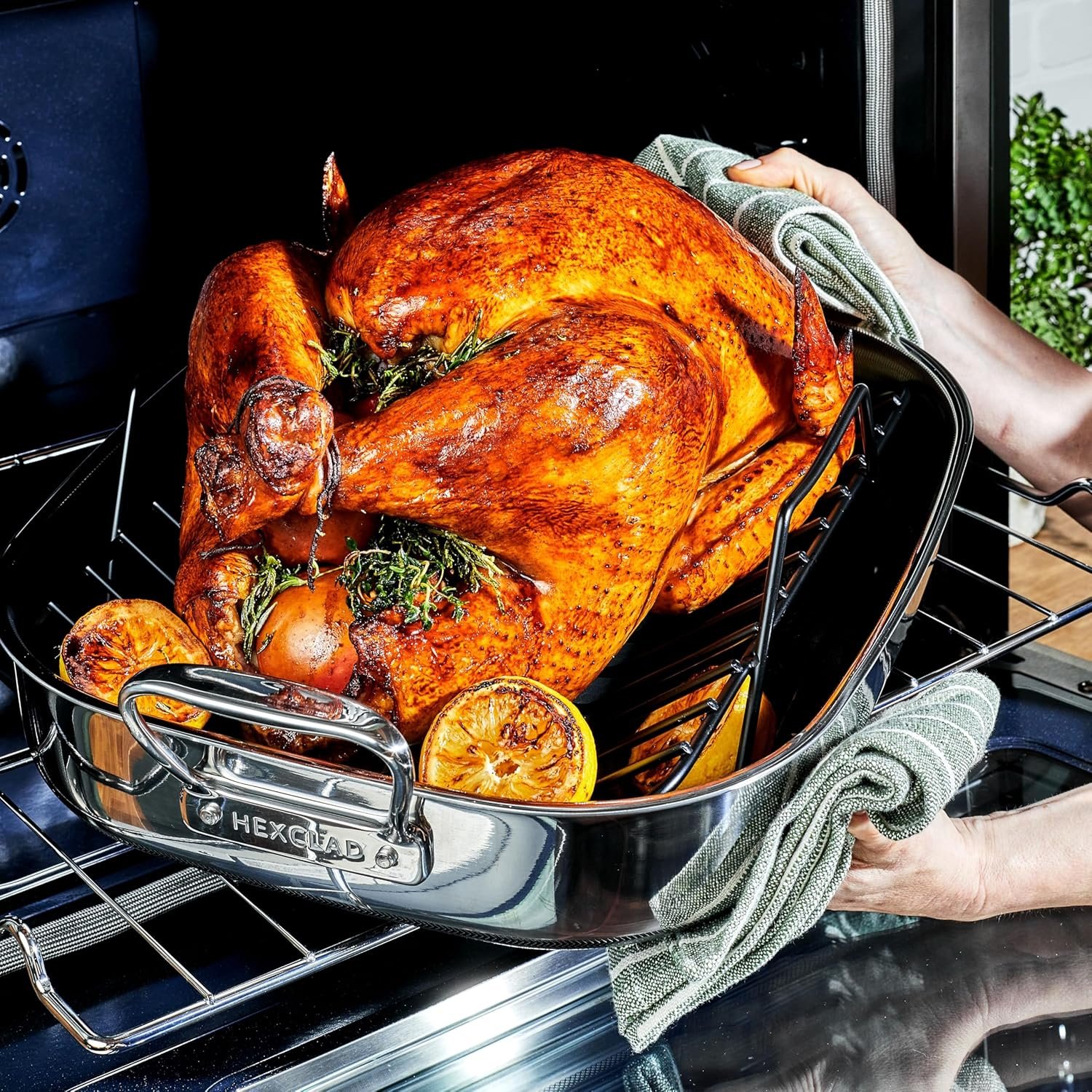 Elevate your cooking with the HexClad 16″×14″ Hybrid Roasting Pan. Crafted from durable stainless steel with a unique hexagonal nonstick surface, it ensures perfect searing and effortless food release. Compatible with all cooktops, including induction, and oven-safe for versatile use, this pan combines professional performance with easy cleanup—upgrade your kitchen today.