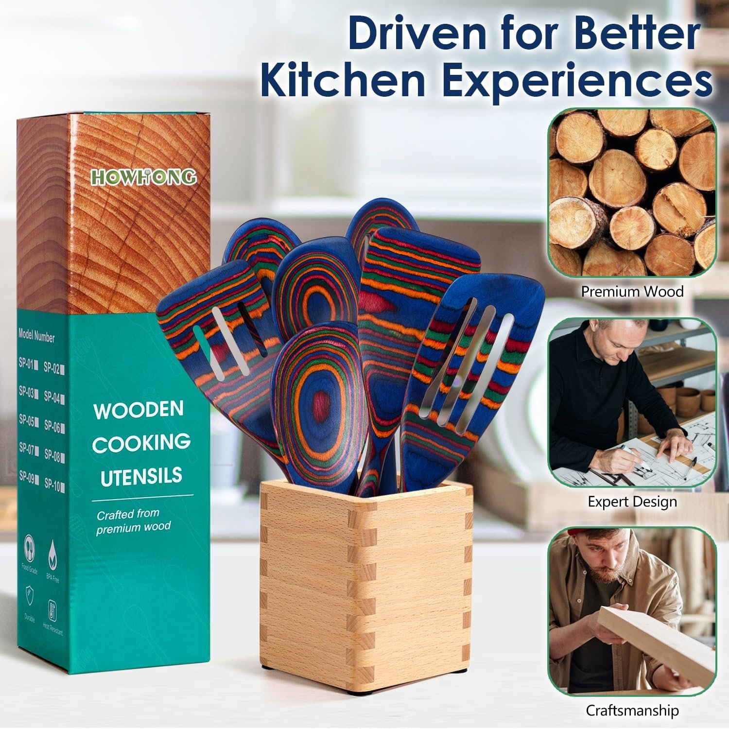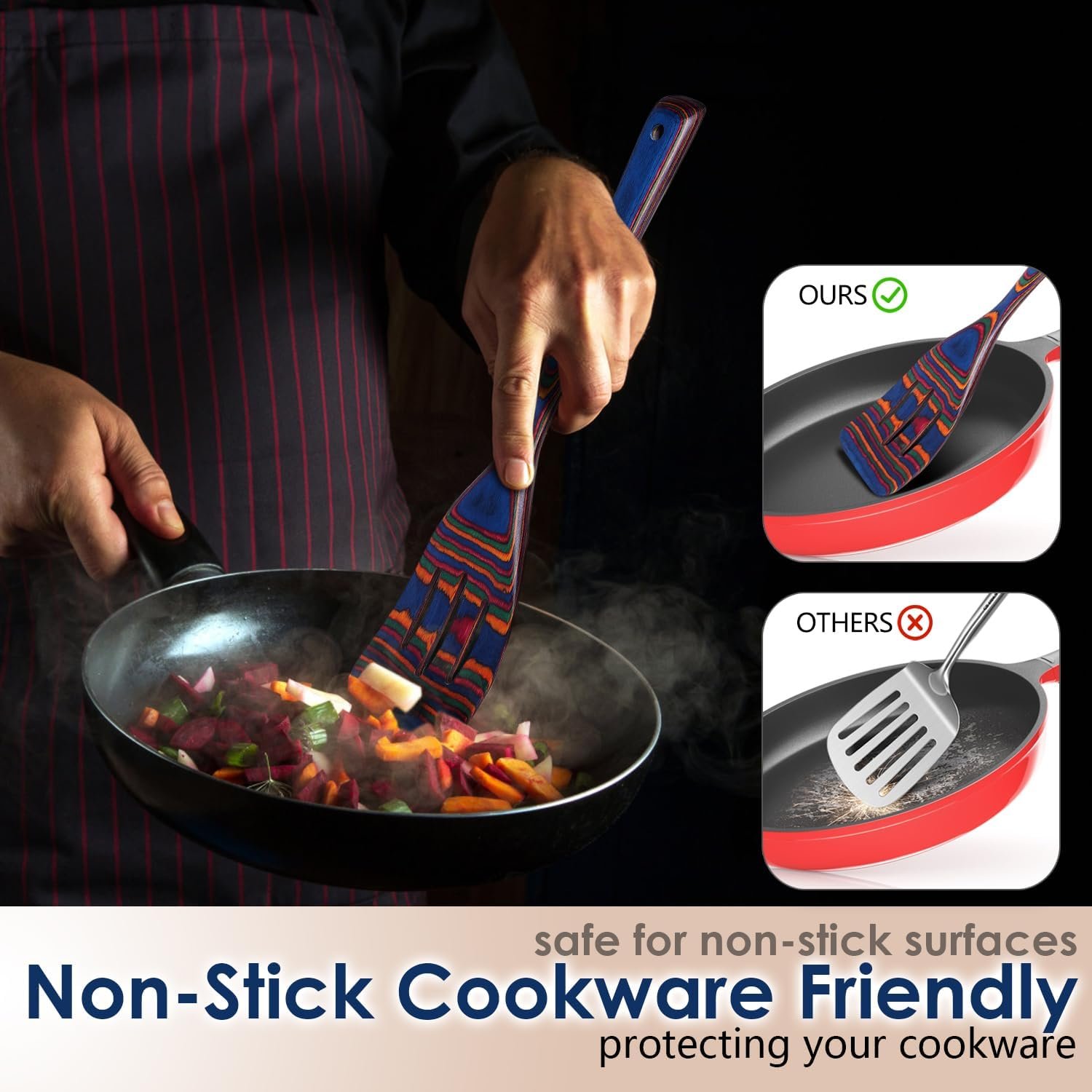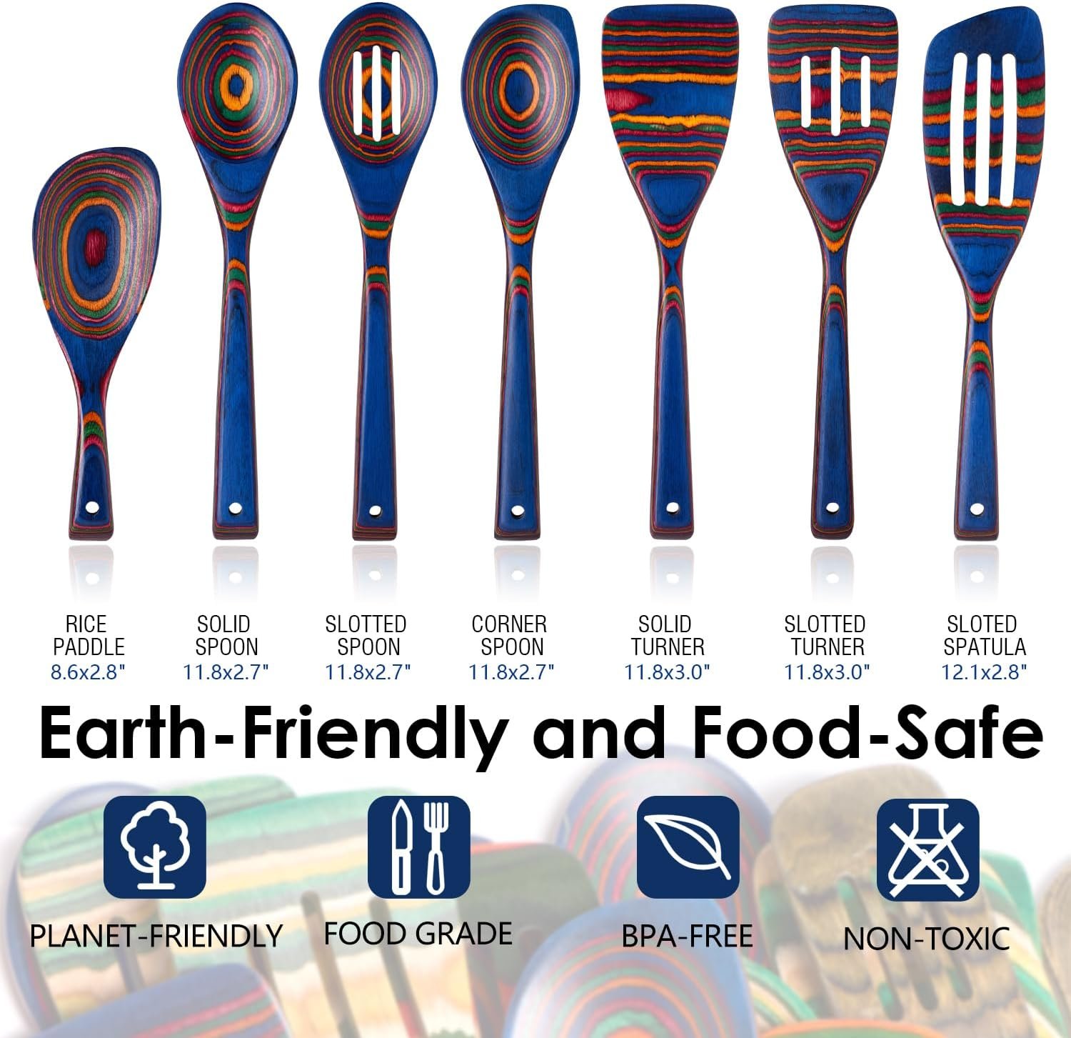Elevate your kitchen style with the HOWHONG Spectrum 7-Piece Pakkawood Utensil Set. Featuring vibrant multicolor wooden tools handcrafted from durable, non-toxic pakkawood, this set is safe for non-stick cookware and designed for everyday cooking, serving, and stirring. With ergonomic handles and a bold spectrum design, it brings both function and flair to your culinary routine — upgrade your kitchen today!